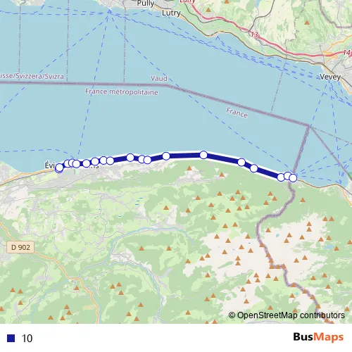 Place de la Gare - Rue Nationale - Route du Léman - Rue du Locum - Rue Nationale - Route Nationale - Route de la Grandvin - Route Nationale - Avenue de Grande Rive - Quai Paul Leger - Quai Baron de Blonay - Avenue du Général Dupas - Avenue Anna de Noailles - Avenue de la Gare