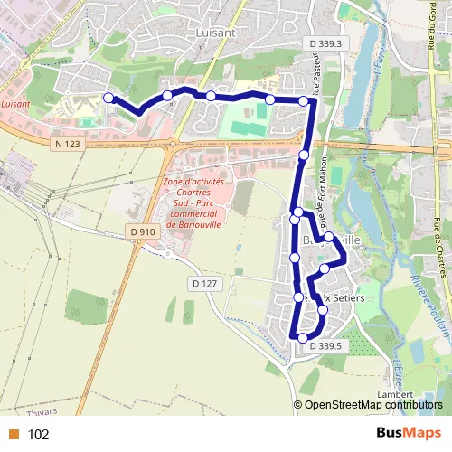 See why over 2 million users trust and consider busmaps.com as the best public transport website. busmaps gives you Chartres Buses suggested routes, real-time bus tracker, line route maps in Chartres, and helps to find the closest 102 bus stops near you. No internet available? Download an offline PDF map and bus schedule for the 102 bus to take on your trip.