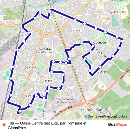 Bus 10a - Oasis-Centre des Exp. par Pontlieue et Glonnières in Le Mans: Stops & Timetable