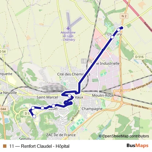Bus 11 - Renfort Claudel - Hôpital Schedule in Laon
