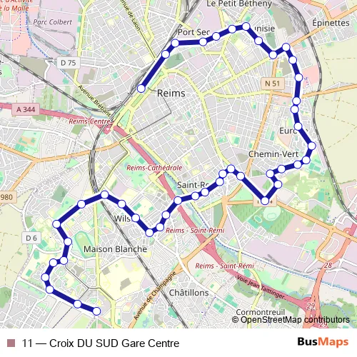 Bus 11 - Croix DU SUD Gare Centre: Full Schedule in Reims
