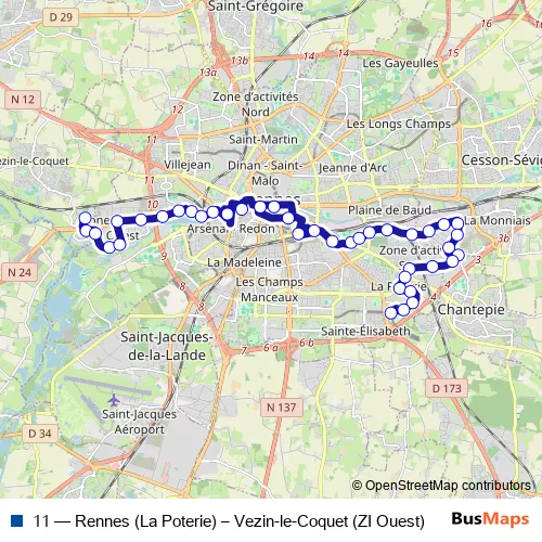 11 Bus - Rennes (La Poterie) – Vezin-le-Coquet (ZI Ouest)