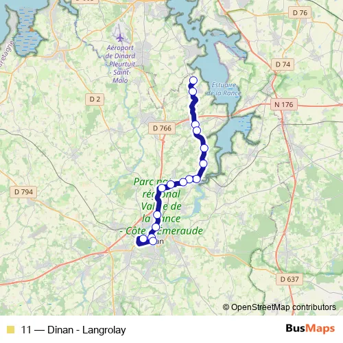 See why over 2 million users trust and consider busmaps.com as the best public transport website. busmaps gives you Dinan Buses suggested routes, real-time bus tracker, line route maps in Dinan, and helps to find the closest 11 bus stops near you. No internet available? Download an offline PDF map and bus schedule for the 11 bus to take on your trip.