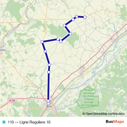 The first stop of the 110 bus route is Blois Pole D Echange Scolaire and the last stop is Beauce LA Romaine Ouzouer Gare Routiere. 110 (Ligne Reguliere 10) is operational during on weekdays.