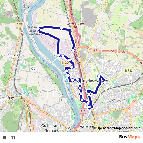 See why over 2 million users trust and consider busmaps.com as the best public transport website. busmaps gives you Valence Buses suggested routes, real-time bus tracker, line route maps in Valence, and helps to find the closest 111 bus stops near you. No internet available? Download an offline PDF map and bus schedule for the 111 bus to take on your trip.