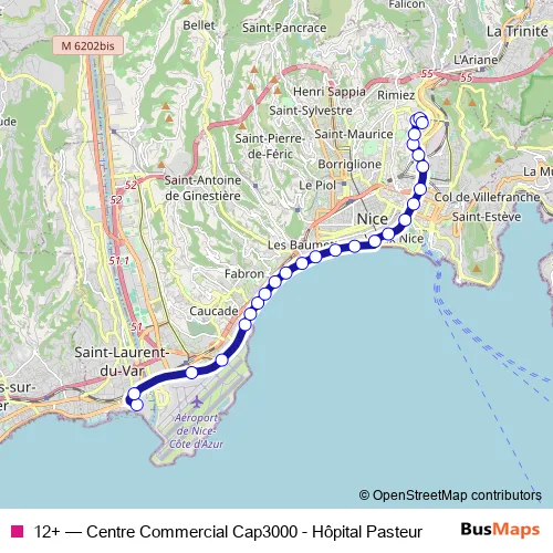 Lignes d'Azur 12+ Centre Commercial Cap3000 - Hôpital Pasteur Bus