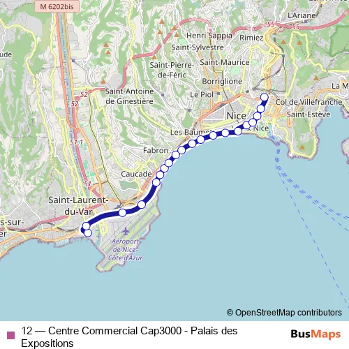 See why over 2 million users trust and consider busmaps.com as the best public transport website. busmaps gives you Nice Buses suggested routes, real-time bus tracker, line route maps in Nice, and helps to find the closest 12 bus stops near you. No internet available? Download an offline PDF map and bus schedule for the 12 bus to take on your trip.