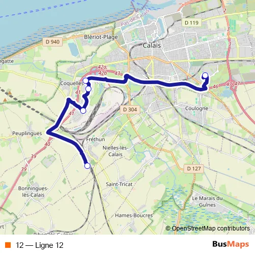 See why over 2 million users trust and consider busmaps.com as the best public transport website. busmaps gives you Calais Buses suggested routes, real-time bus tracker, line route maps in Calais, and helps to find the closest 12 bus stops near you. No internet available? Download an offline PDF map and bus schedule for the 12 bus to take on your trip.