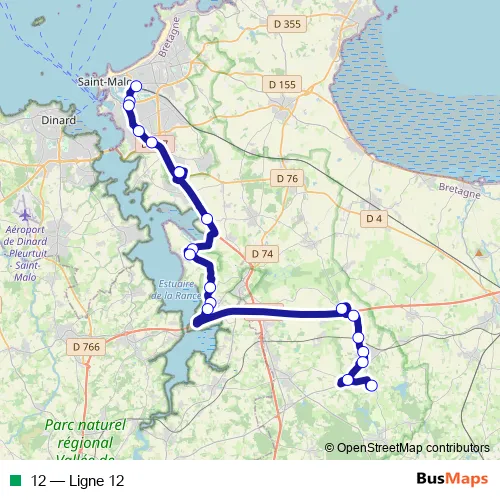 See why over 2 million users trust and consider busmaps.com as the best public transport website. busmaps gives you Saint-Malo Buses suggested routes, real-time bus tracker, line route maps in Saint-Malo, and helps to find the closest 12 bus stops near you. No internet available? Download an offline PDF map and bus schedule for the 12 bus to take on your trip.