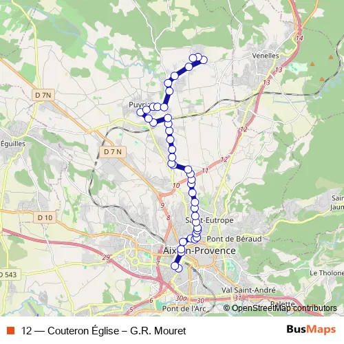 Bus 12 - Couteron Église – G.R. Mouret: Full Schedule in Aix-en-Provence