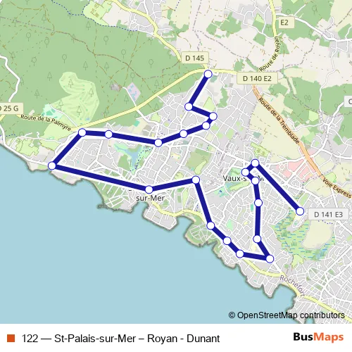 Bus 122 - St-Palais-sur-Mer – Royan - Dunant in Vaux-sur-Mer: Stops & Timetable