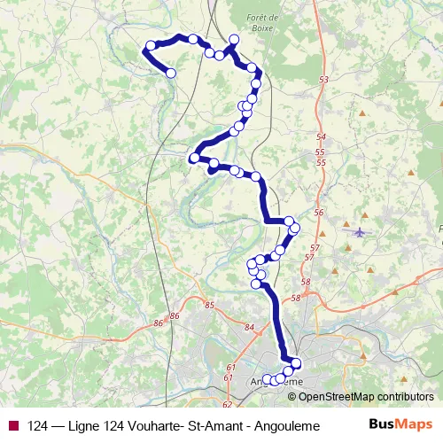 Bus 124 - Ligne 124 Vouharte- St-Amant - Angouleme Schedule in Angouleme