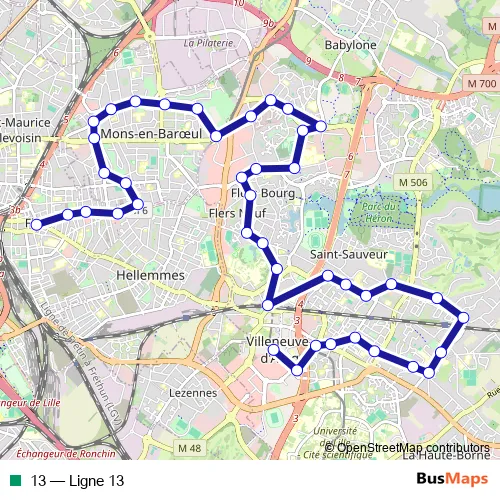 See why over 2 million users trust and consider busmaps.com as the best public transport website. busmaps gives you Lille Buses suggested routes, real-time bus tracker, line route maps in Lille, and helps to find the closest 13 bus stops near you. No internet available? Download an offline PDF map and bus schedule for the 13 bus to take on your trip.