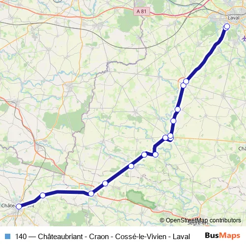 Click here to view the nearest 140 - Châteaubriant - Craon - Cossé-le-Vivien - Laval bus stop.