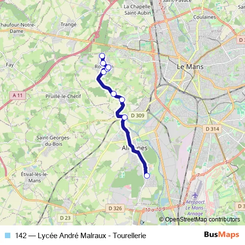 Bus 142 - Lycée André Malraux - Tourellerie: Full Schedule in Le Mans