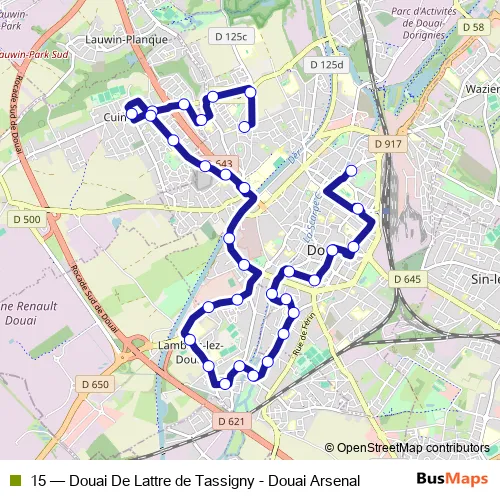 See why over 2 million users trust and consider busmaps.com as the best public transport website. busmaps gives you Douai Buses suggested routes, real-time bus tracker, line route maps in Douai, and helps to find the closest 15 bus stops near you. No internet available? Download an offline PDF map and bus schedule for the 15 bus to take on your trip.
