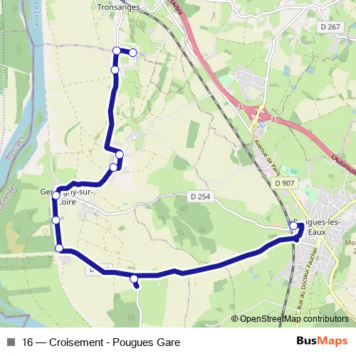 Click here to view the nearest 16 - Croisement - Pougues Gare bus stop.