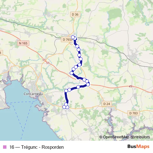 Bus 16 - Trégunc - Rosporden in Melgven: Stops & Timetable