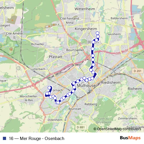 Bus 16 - Mer Rouge - Osenbach in Mulhouse: Stops & Timetable