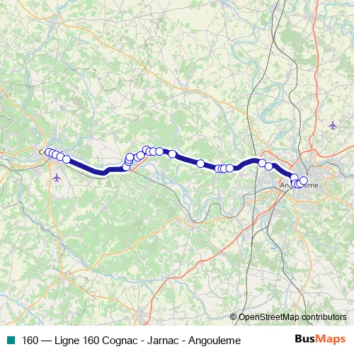 Bus 160 - Ligne 160 Cognac - Jarnac - Angouleme Schedule in Angouleme