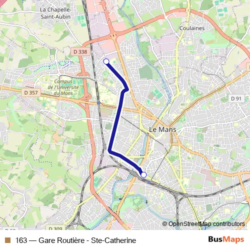 See why over 2 million users trust and consider busmaps.com as the best public transport website. busmaps gives you Le Mans Buses suggested routes, real-time bus tracker, line route maps in Le Mans, and helps to find the closest 163 bus stops near you. No internet available? Download an offline PDF map and bus schedule for the 163 bus to take on your trip.