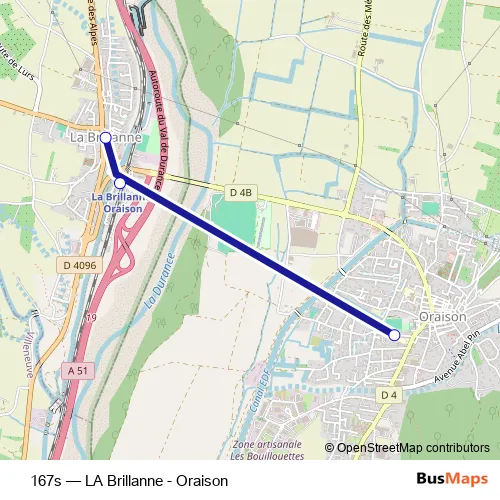 The first stop of the 167s bus route is Clg. DR J.M.G. Itard and the last stop is Village Brillanne. 167s (LA Brillanne - Oraison) is operational during on weekdays.