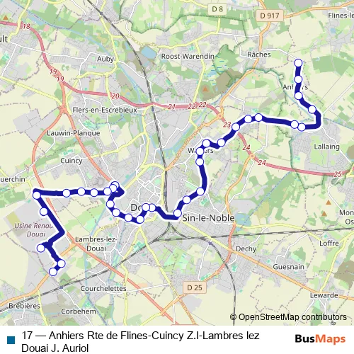 Bus 17 - Anhiers Rte de Flines-Cuincy Z.I-Lambres lez Douai J. Auriol: Full Schedule in Douai