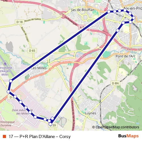 See why over 2 million users trust and consider busmaps.com as the best public transport website. busmaps gives you Aix-en-Provence Buses suggested routes, real-time bus tracker, line route maps in Aix-en-Provence, and helps to find the closest 17 bus stops near you. No internet available? Download an offline PDF map and bus schedule for the 17 bus to take on your trip.