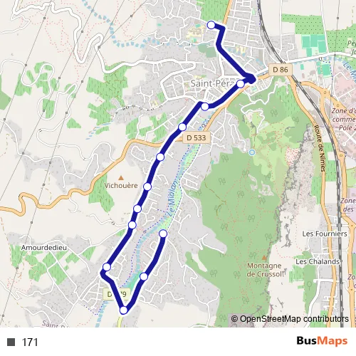 See why over 2 million users trust and consider busmaps.com as the best public transport website. busmaps gives you Valence Buses suggested routes, real-time bus tracker, line route maps in Valence, and helps to find the closest 171 bus stops near you. No internet available? Download an offline PDF map and bus schedule for the 171 bus to take on your trip.