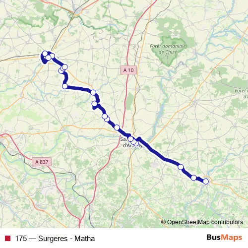 Click here to view the nearest 175 - Surgeres - Matha bus stop.