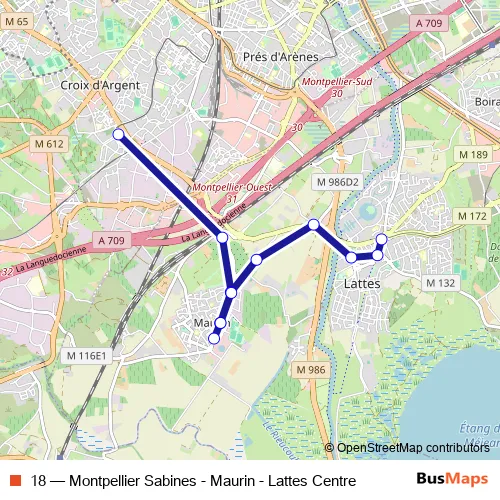 The first stop of the 18 bus route is Lattes Centre and the last stop is Sabines. 18 (Montpellier Sabines - Maurin - Lattes Centre) is operational during everyday.