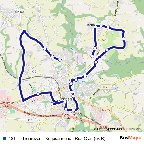Bus 181 - Tréméven - Kerjouanneau - Roz Glas (ex B): Full Schedule in Quimperle