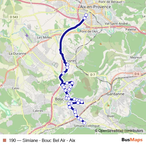 Bus 190 - Simiane - Bouc Bel Air - Aix: Full Schedule in Bouc-Bel-Air