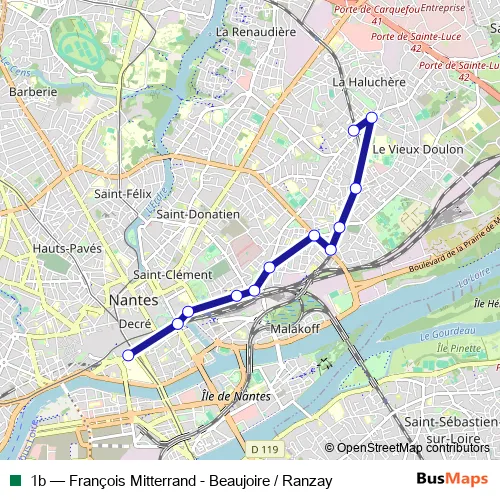 Click here to view the nearest 1b - François Mitterrand - Beaujoire / Ranzay bus stop.