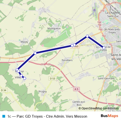 Bus 1c - Parc GD Troyes - Ctre Admin. Vers Messon in Troyes: Stops & Timetable