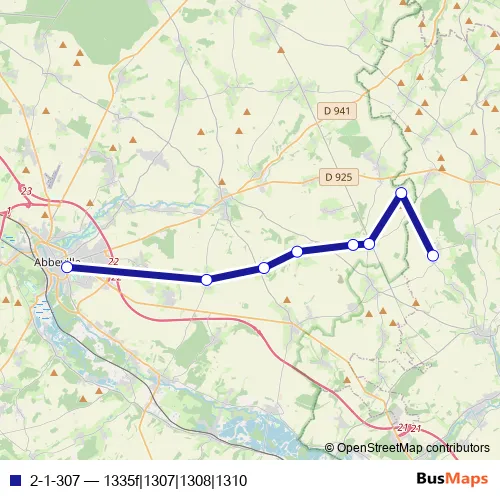 The first stop of the 2-1-307 bus route is Abbeville - Cité scolaire and the last stop is Fransu - Mairie. 2-1-307 (1335f|1307|1308|1310) is operational during everyday.