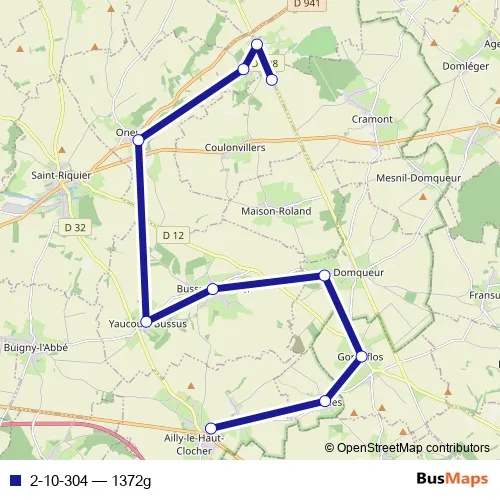 The first stop of the 2-10-304 bus route is Ailly-LE-Haut-Clocher - Collège Alain Jacques and the last stop is Coulonvillers - La Chaussée. 2-10-304 (1372g) is operational during everyday.