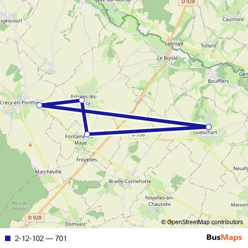 See why over 2 million users trust and consider busmaps.com as the best public transport website. busmaps gives you Crecy-en-Ponthieu Buses suggested routes, real-time bus tracker, line route maps in Crecy-en-Ponthieu, and helps to find the closest 2-12-102 bus stops near you. No internet available? Download an offline PDF map and bus schedule for the 2-12-102 bus to take on your trip.