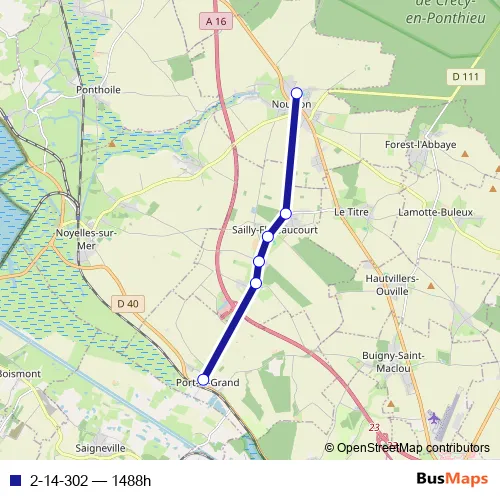 The first stop of the 2-14-302 bus route is Nouvion - Collège Jacques Prévert and the last stop is Port-LE-Grand - Place de la Mairie. 2-14-302 (1488h) is operational during everyday.