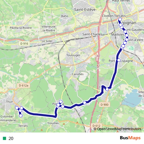 See why over 2 million users trust and consider busmaps.com as the best public transport website. busmaps gives you Perpignan Buses suggested routes, real-time bus tracker, line route maps in Perpignan, and helps to find the closest 20 bus stops near you. No internet available? Download an offline PDF map and bus schedule for the 20 bus to take on your trip.