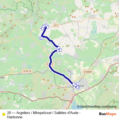 Bus 20 - Argeliers / Mirepeïsset / Sallèles-d'Aude - Narbonne: Full Schedule in Narbonne