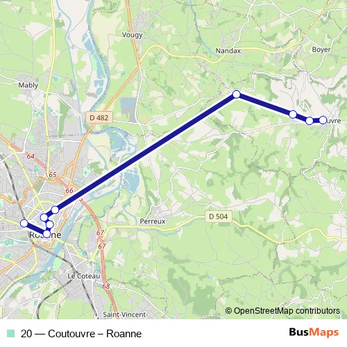 See why over 2 million users trust and consider busmaps.com as the best public transport website. busmaps gives you Roanne Buses suggested routes, real-time bus tracker, line route maps in Roanne, and helps to find the closest 20 bus stops near you. No internet available? Download an offline PDF map and bus schedule for the 20 bus to take on your trip.