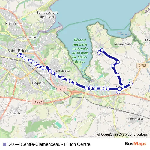 Bus 20 - Centre-Clemenceau - Hillion Centre in Saint-Brieuc: Stops & Timetable