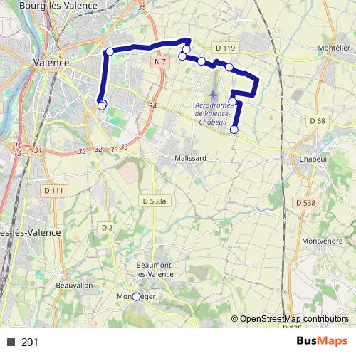 See why over 2 million users trust and consider busmaps.com as the best public transport website. busmaps gives you Valence Buses suggested routes, real-time bus tracker, line route maps in Valence, and helps to find the closest 201 bus stops near you. No internet available? Download an offline PDF map and bus schedule for the 201 bus to take on your trip.