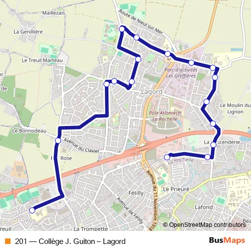 Click here to view the nearest 201 - Collège J. Guiton – Lagord bus stop.