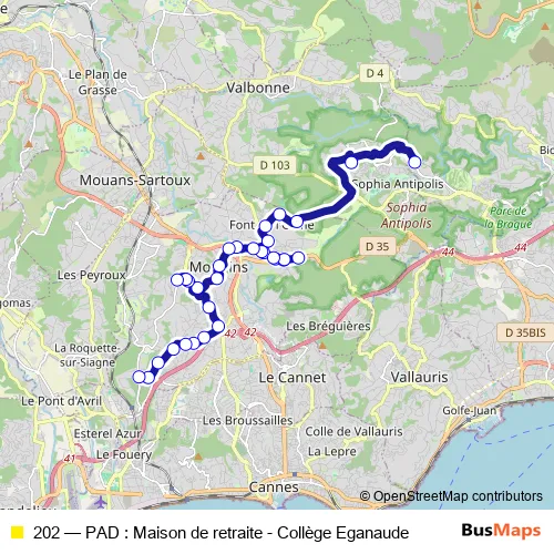 Bus 202 - PAD : Maison de retraite - Collège Eganaude: Full Schedule in Mougins