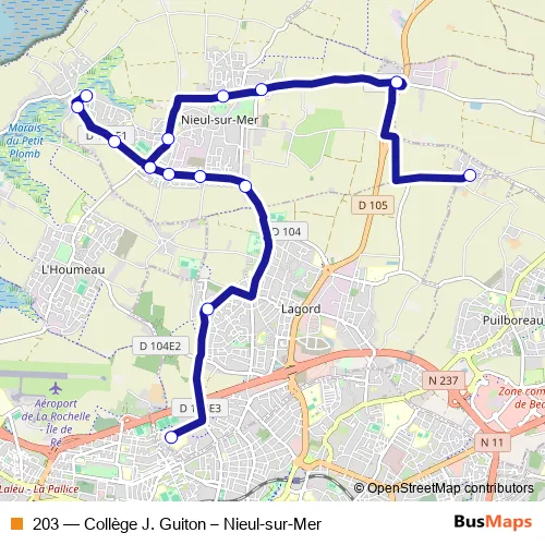 Bus 203 - Collège J. Guiton – Nieul-sur-Mer in La Rochelle: Stops & Timetable