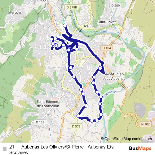 Click here to view the nearest 21 - Aubenas Les Oliviers/St Pierre - Aubenas Ets Scolaires bus stop.