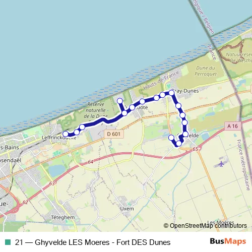 Bus 21 - Ghyvelde LES Moeres - Fort DES Dunes: Full Schedule in Ghyvelde