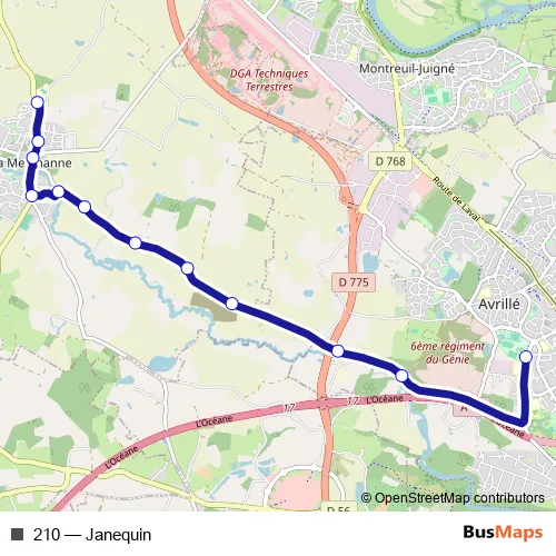 The first stop of the 210 bus route is Collège Janequin and the last stop is Mauny. 210 (Janequin) is operational during on weekdays.